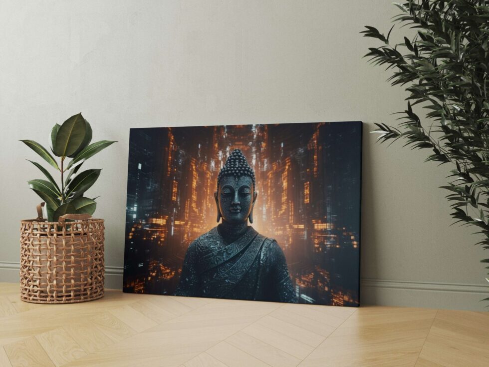 Transform your space into a sanctuary of tranquility with our exquisite Buddha wall paintings. Crafted with meticulous detail and imbued with spiritual serenity, each piece radiates peace and harmony. Elevate your home decor with these timeless artworks, perfect for creating a serene ambiance in any room. Explore our collection and invite the essence of enlightenment into your living space today The canvas is carefully stretched over a durable wooden frame, creating a gallery-quality finish that adds a touch of elegance to any room. Whether you’re looking for a Buddha framed painting for wall or a Buddha big wall painting with frame